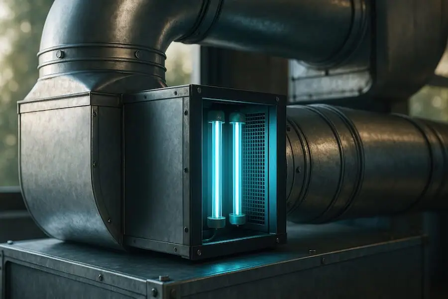 UV (ultraviolet) lights are installed directly into your HVAC system, typically near the indoor coil or in the ductwork. As air passes through the system, the UV light works to neutralize harmful microorganisms such as mold, mildew, bacteria, and viruses.